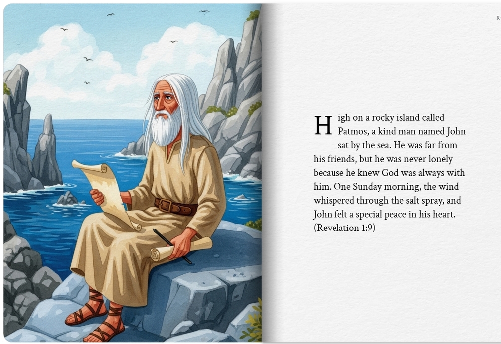 A story for a 7-year-old that focuses on the first four letters to the churches in Revelation Chapter 2, following John as he hears Jesus' messages for Ephesus, Smyrna, Pergamum, and Thyatira. This story includes scripture references to help young readers understand how to stay close to Jesus and be brave in their faith.